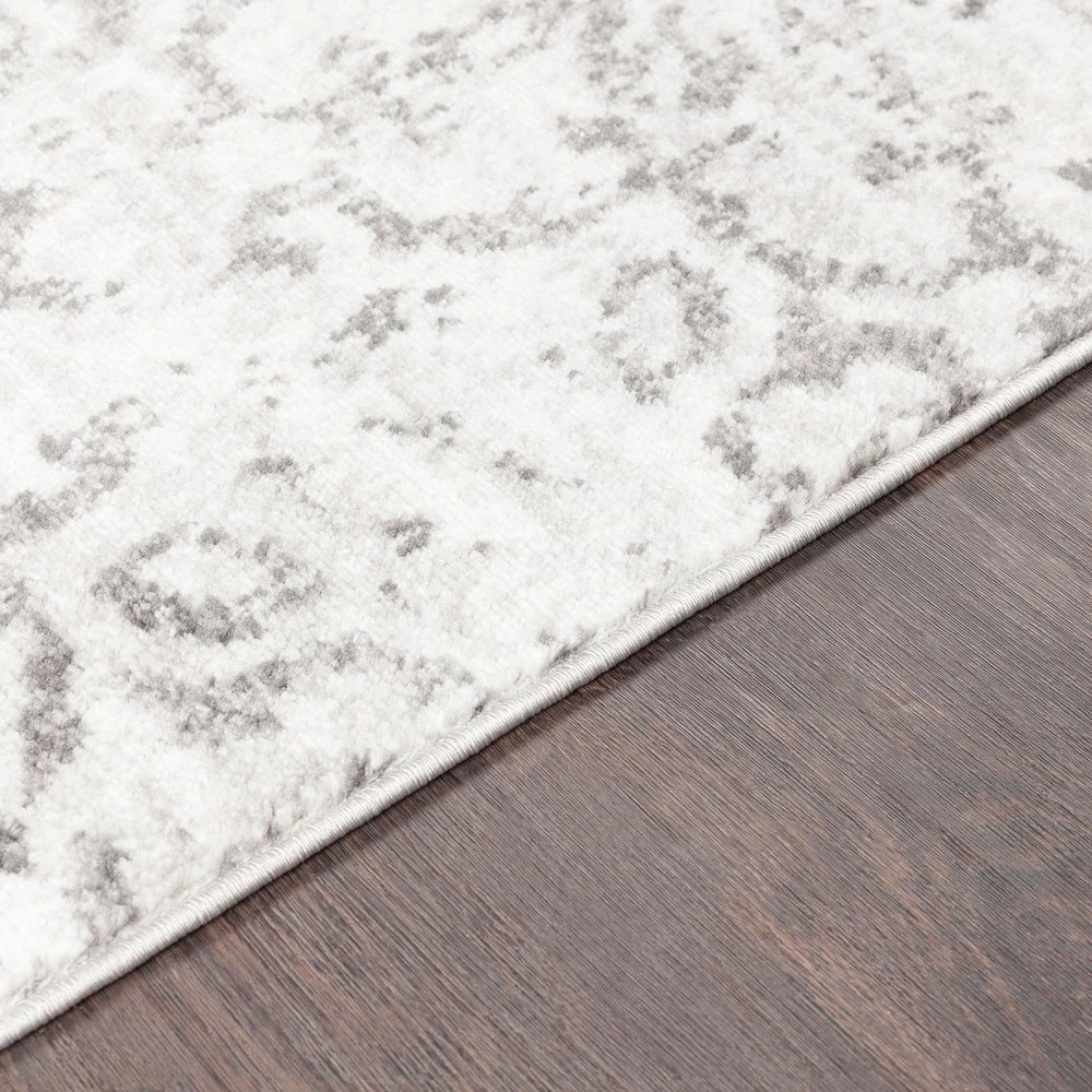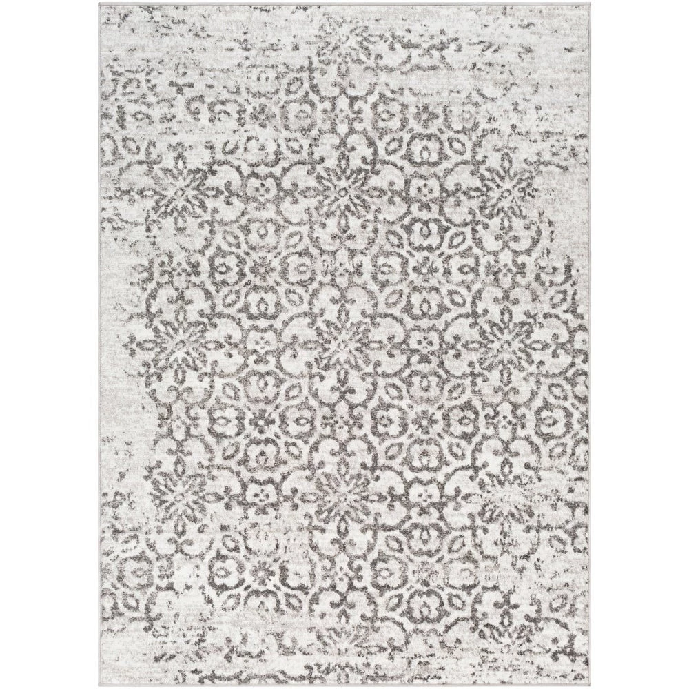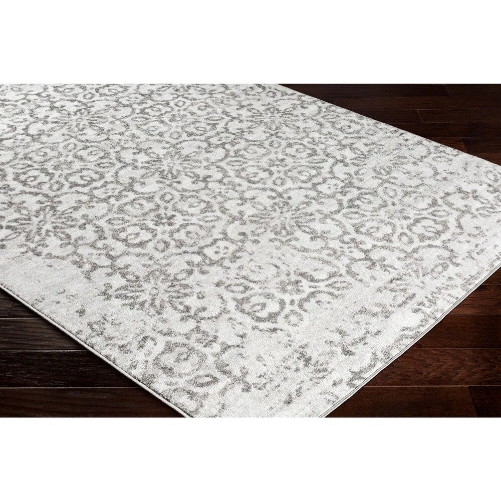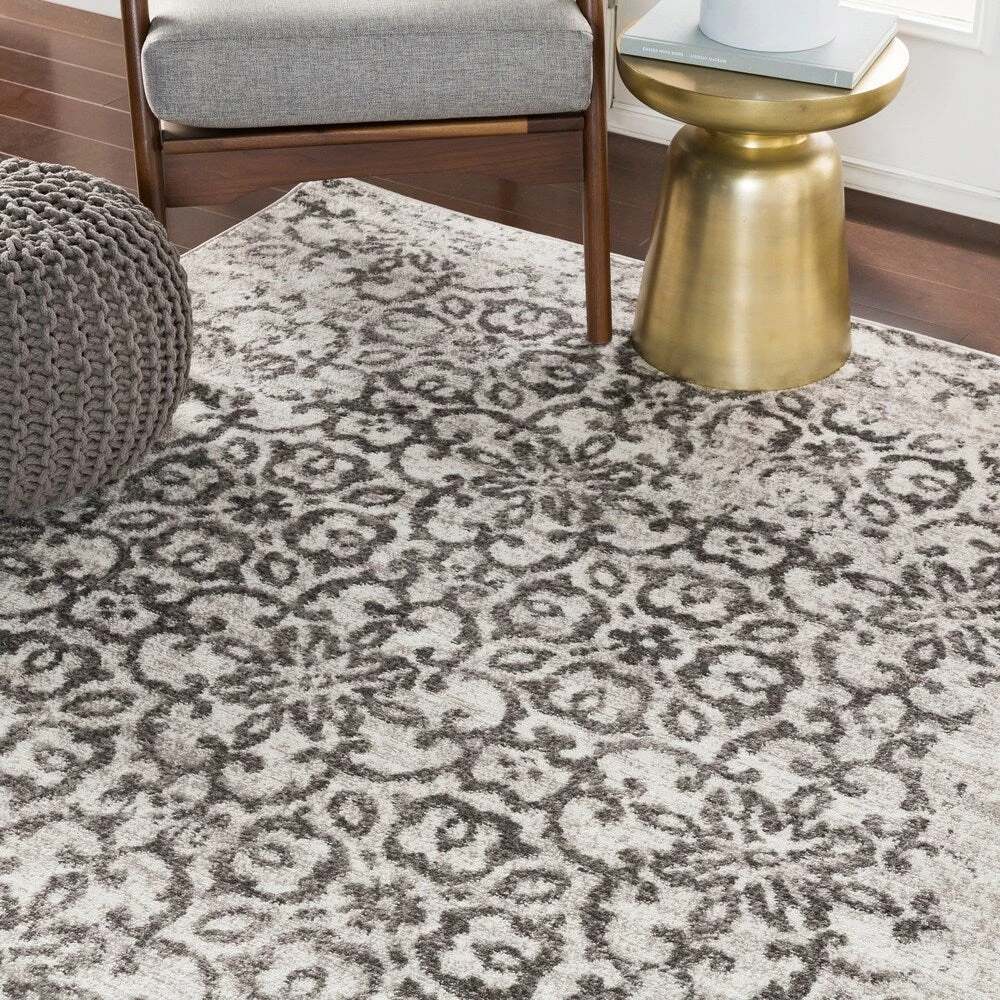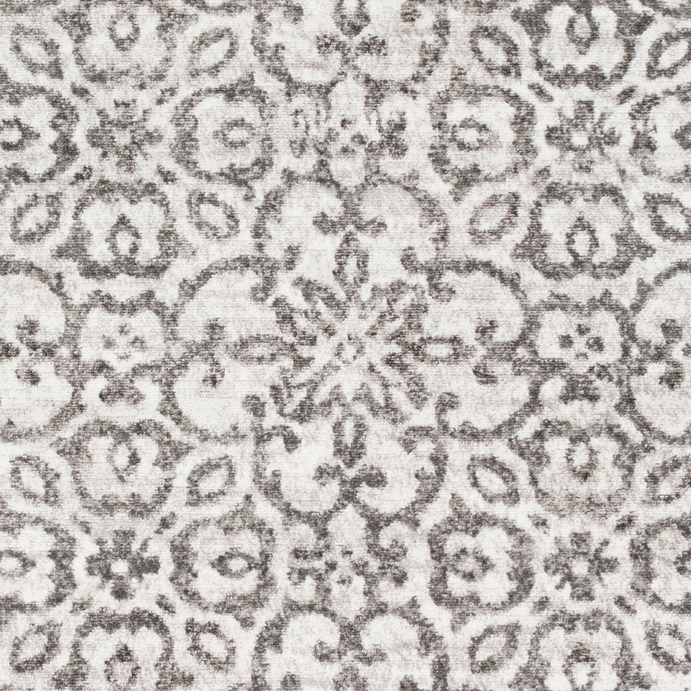 This lovely collection features a distressed floral damask pattern in a beautiful blend of Charcoal, Light Gray and White. Gorgeous and soft, this rug features a comfortable pile with minimal shedding. Great for high-traffic areas. Machine made in Turkey with 100% polypropylene. Spot or professionally clean only. Rug pad recommended.