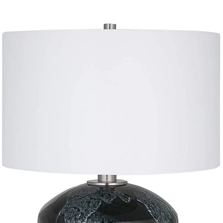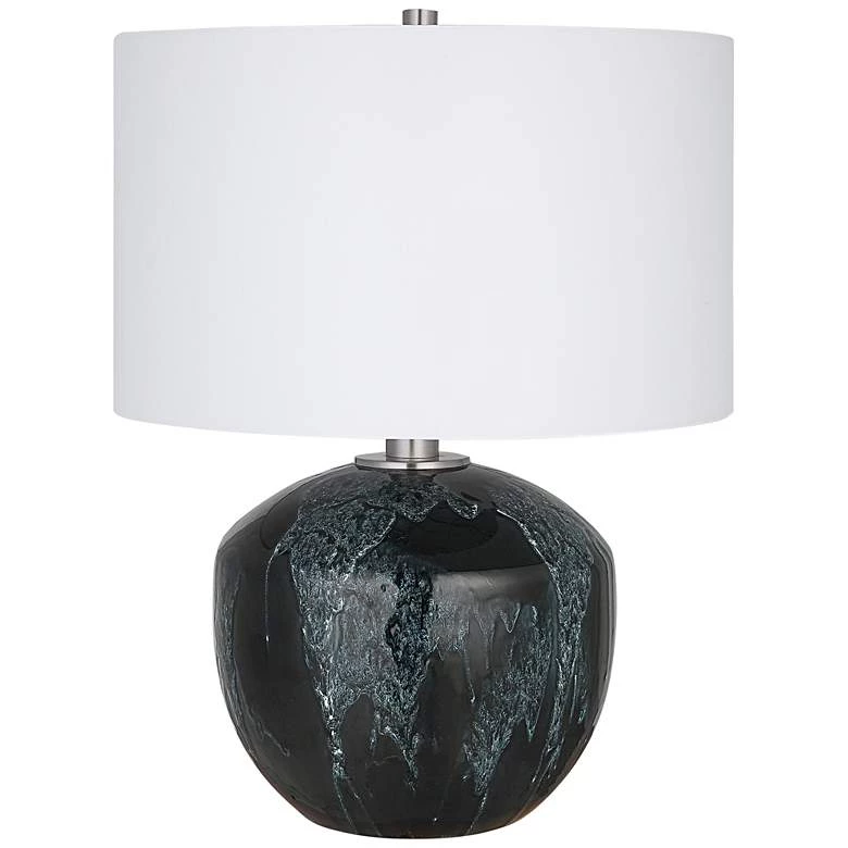 Combine transitional and coastal vibes into one with the Highlands green ceramic table lamp from the Uttermost brand.