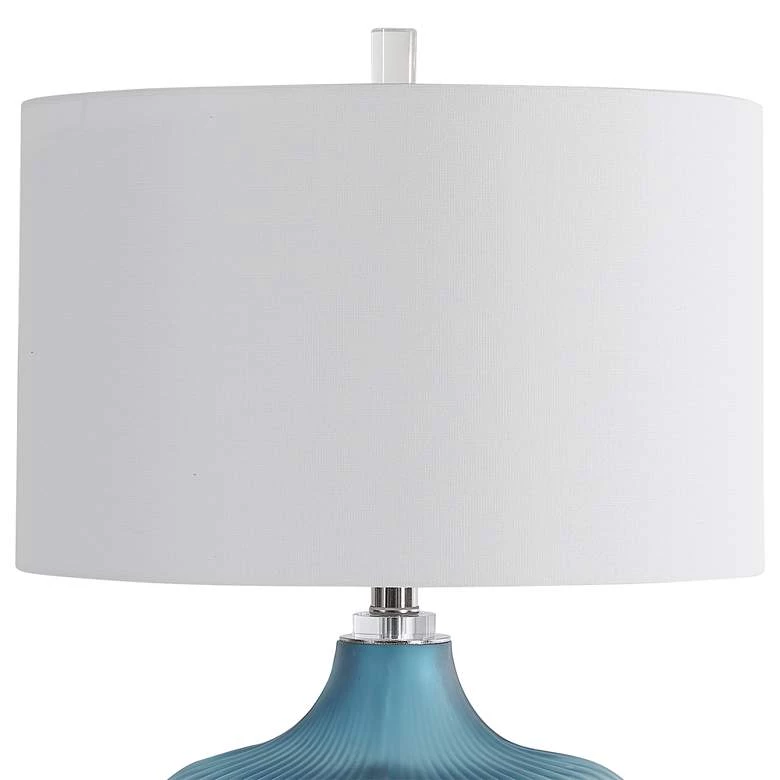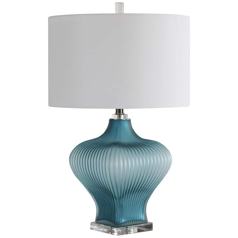 A blush of color turns this frosted turquoise fluted vase table lamp into a tasteful traditional light source.