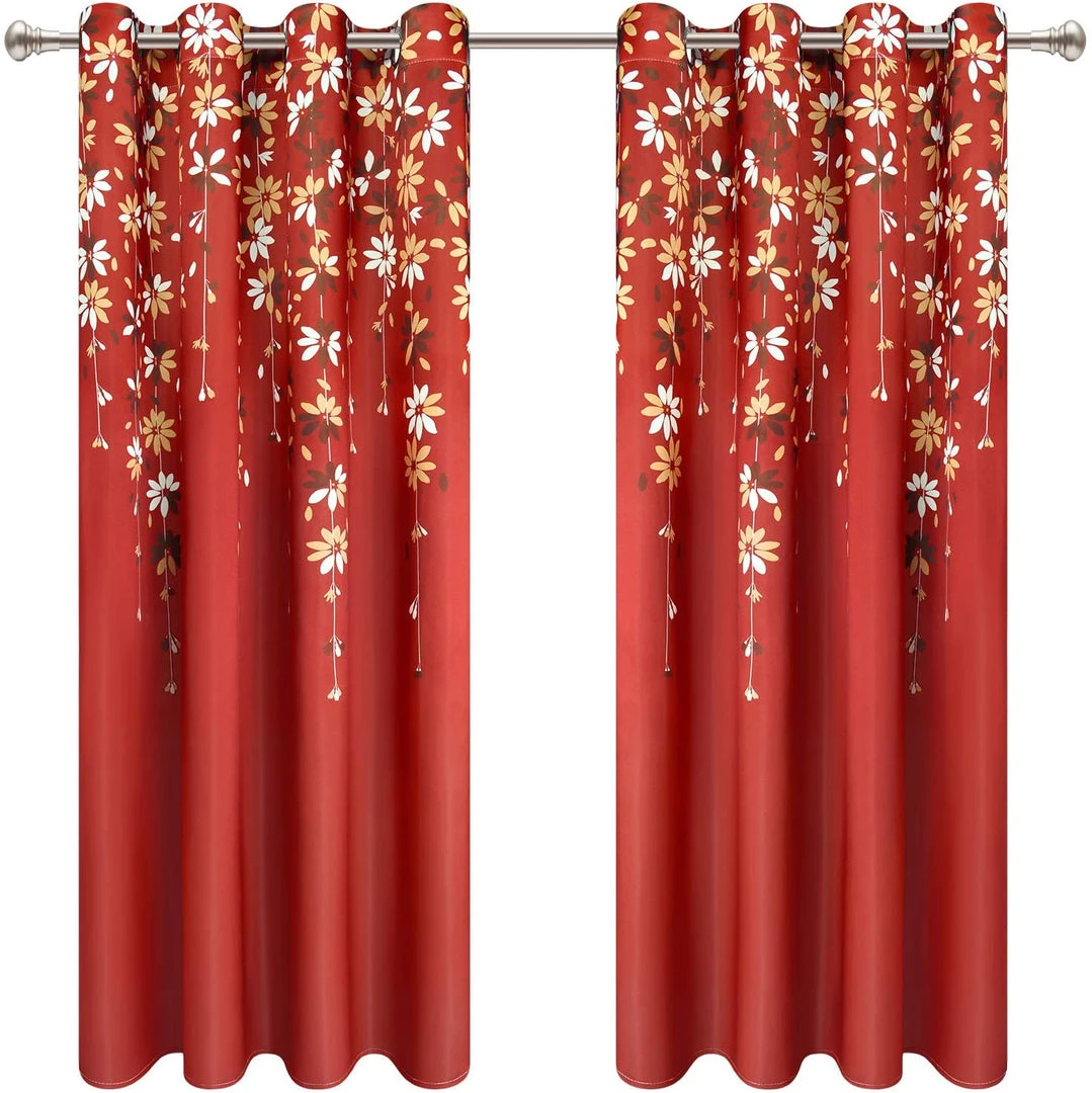 - HIGH-QUALITY MATERIAL: These orange floral window curtains are made of the premium quality satin that has silky soft hand touch, safety and durability. Our flower curtains are unlined and perfect for home decoration and privacy protection, but can’t block out sunlight. You can match our floral curtains matched with blackout liners if you want to block over 95% light.