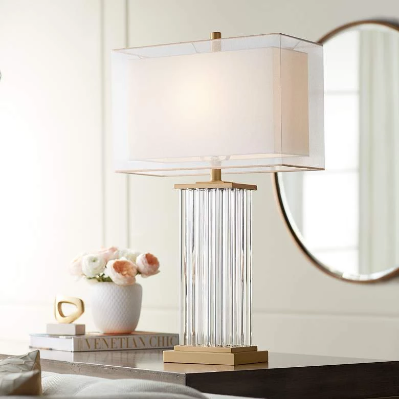 Add clean elegance and modern elegance to your home with this designer luxe table lamp that features a double shade look.