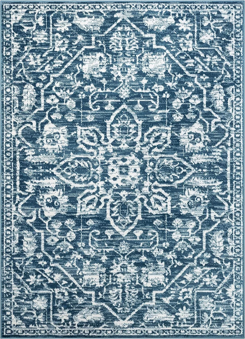 WRG All Area Rugs And Runners Blue Gray Ivory Floral Area Rug Non Slip/ No Skid – Low Pile