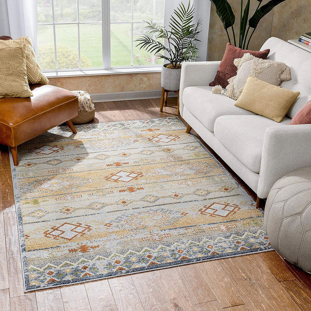WRG All Area Rugs And Runners Blue Gray Ivory Floral Area Rug Non Slip/ No Skid – Low Pile