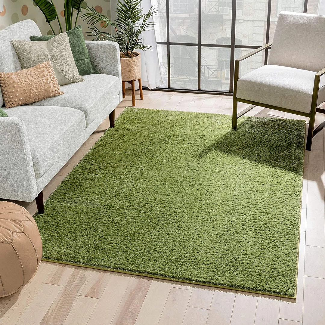 Well Woven Ciel Green Ultra-Soft Multi-Textured Shimmer Pile Area Rug