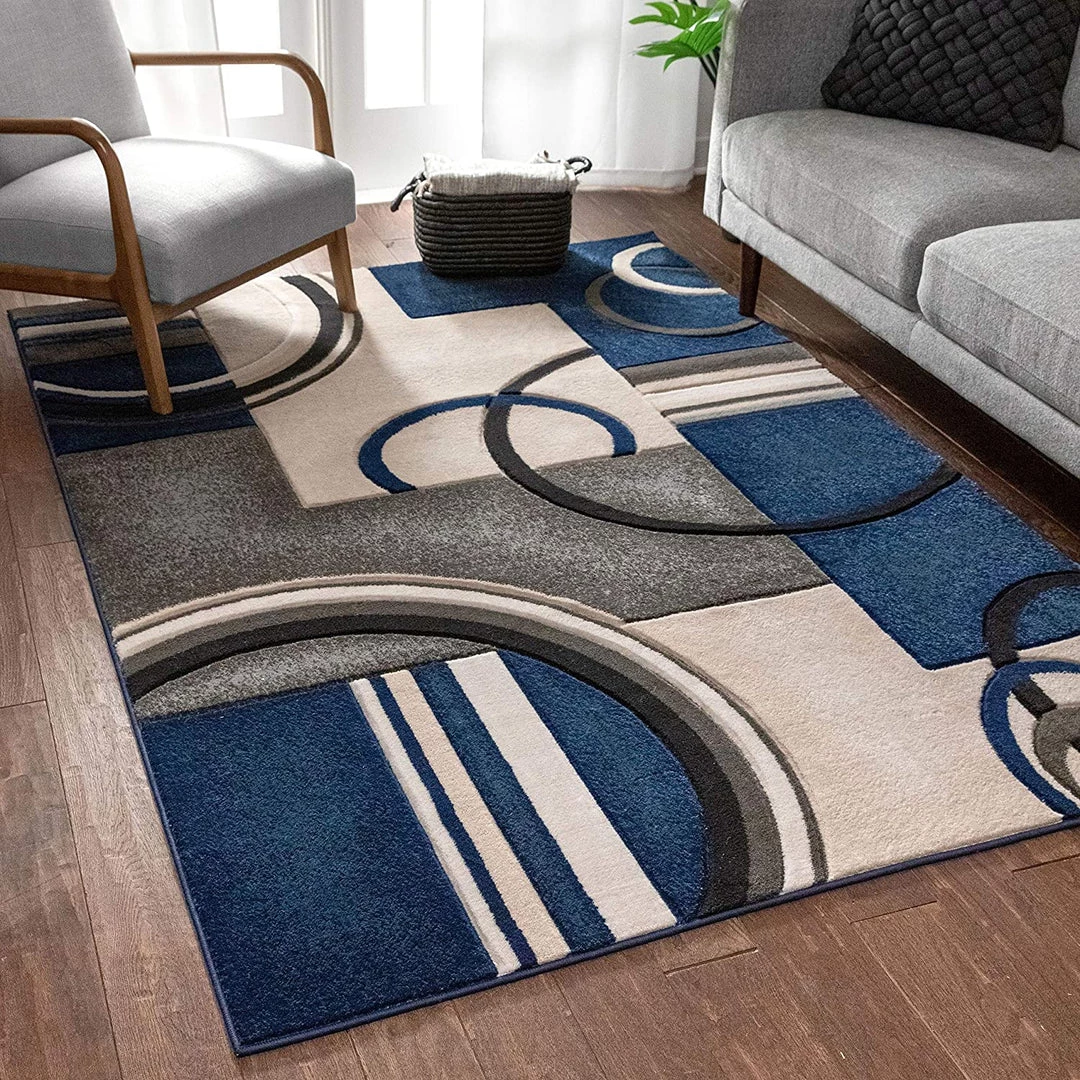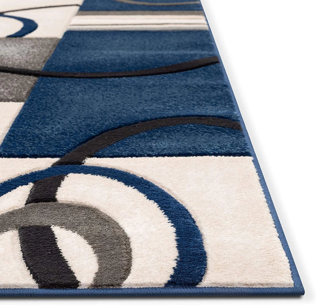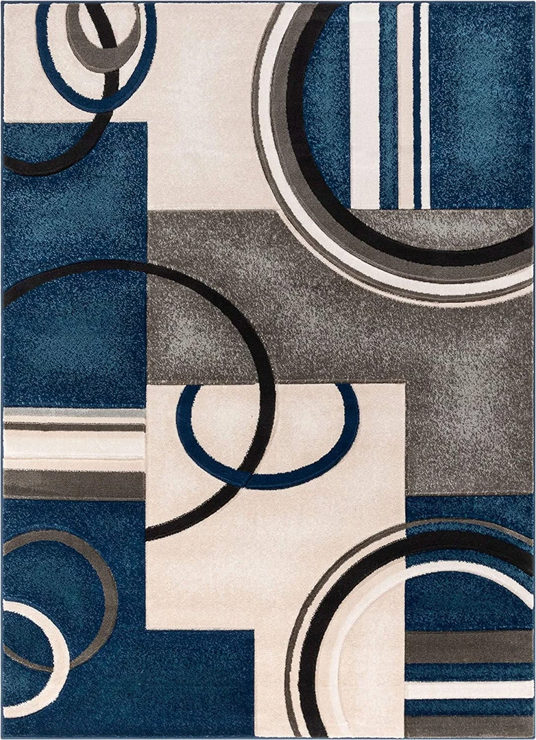 WRG Contemporary Circles Gray/Grey Blue White Black Area Rug