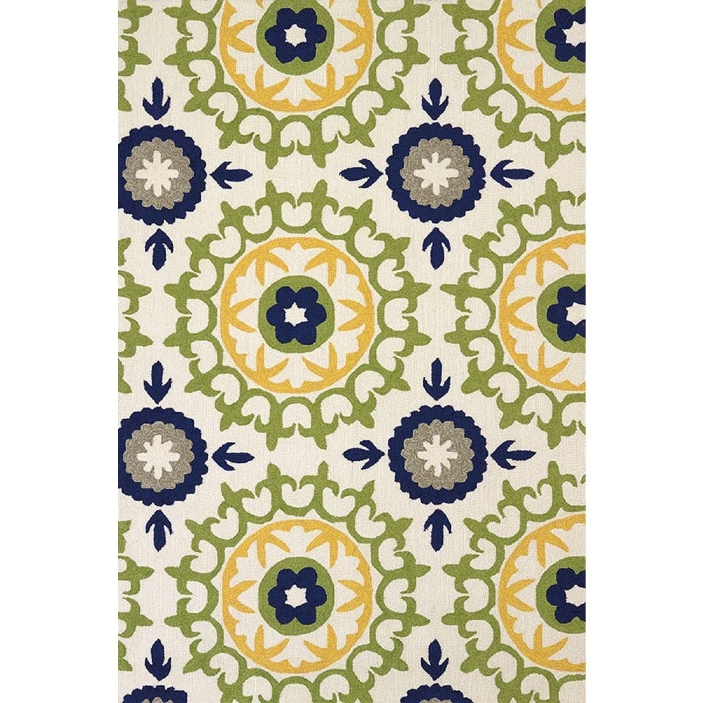 Hand-hooked, this Piazza Jaylene Area Rug has a soft, plush pile to create a soft floor covering in your home. In a rectangular shape, this olefin and polypropylene rug brings liveliness to your interior decor. This beautiful Piazza Collection rug is hand hooked with solution dyed olefin yarn which creates a unique texture that adds depth to is interesting geometric pattern. It’s versatile multi-purpose construction allows this rug to be used outside on the patio or inside in the living room, dining area or bedroom. The lovely multi-color medallion design is at home in casual or transitional room settings.