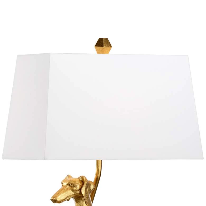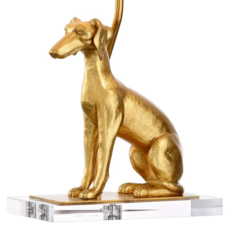 Cheer up your decor with the charming design of this dog-themed antique gold metal table lamp.