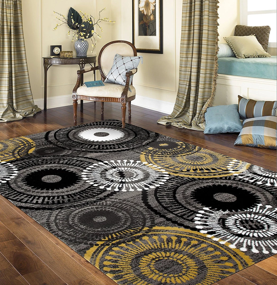 WRG All Area Rugs And Runners Contemporary Circles Gray/Grey Yellow White Black Area Rug