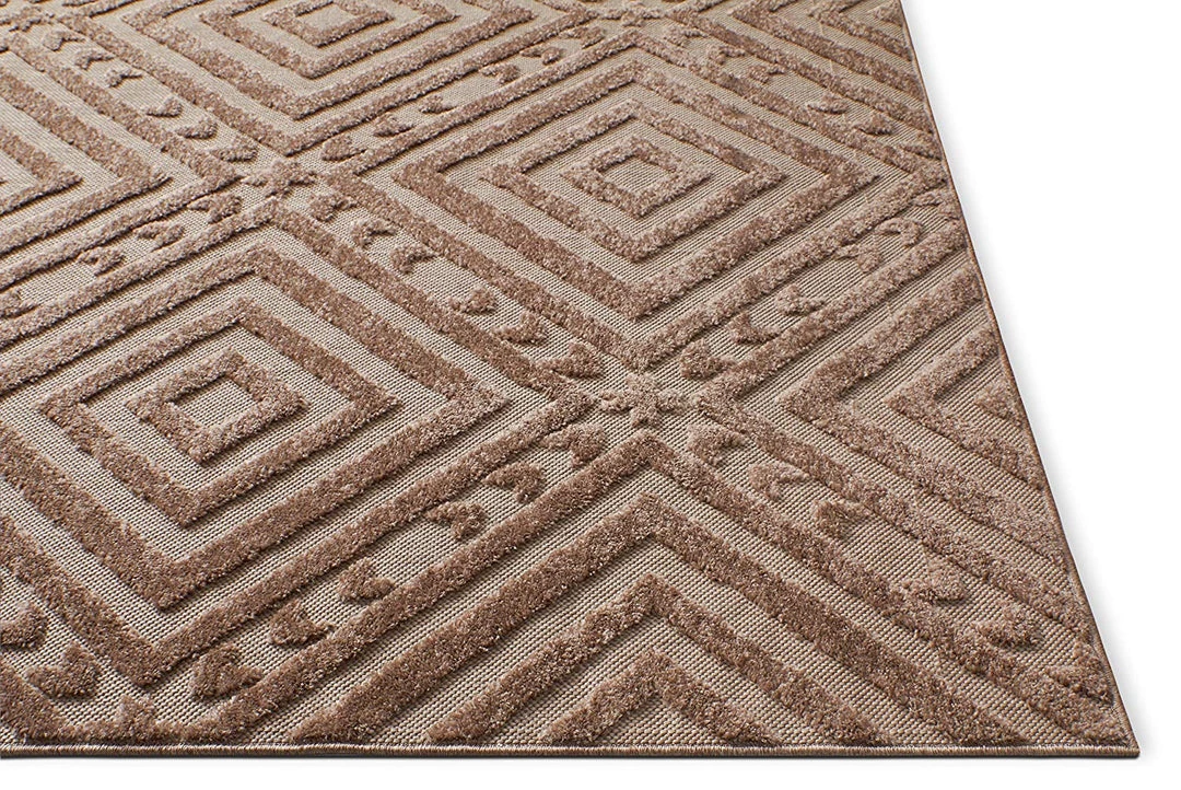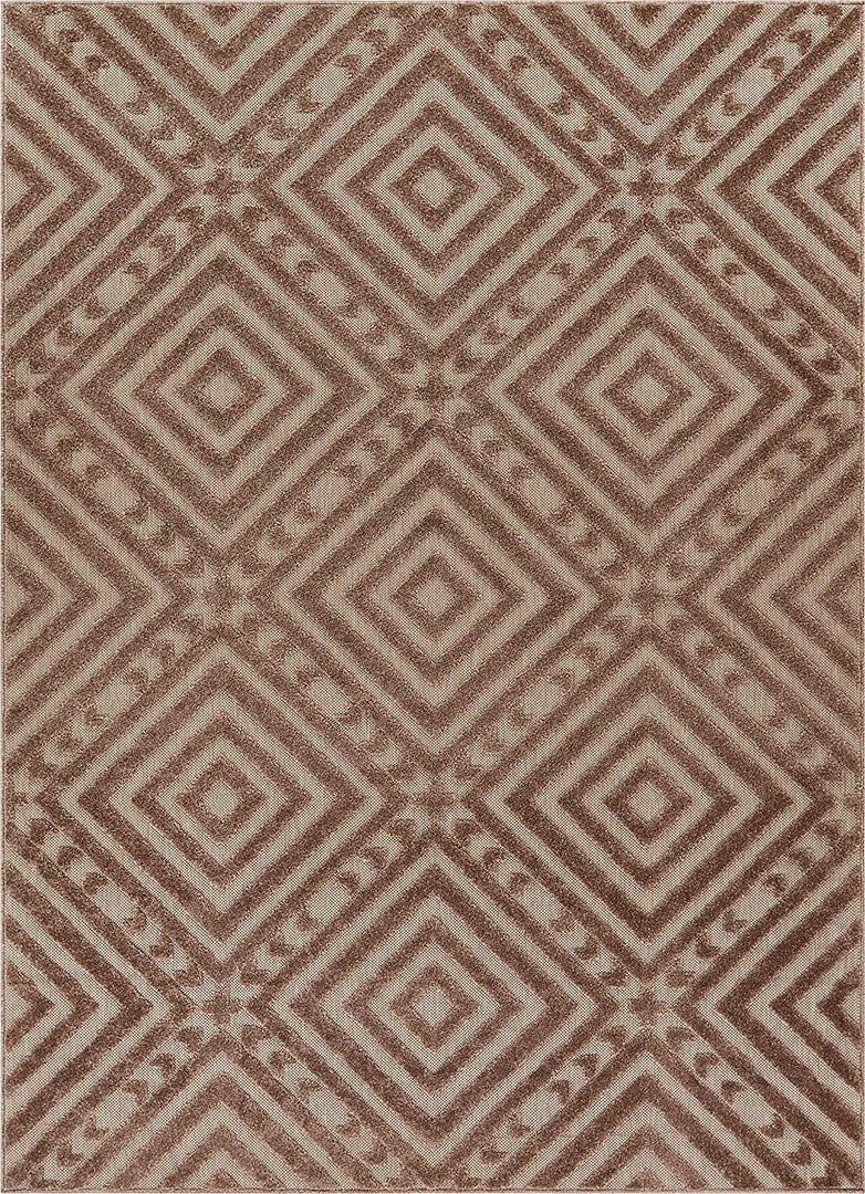 The rich, lively colors of this warm, tribal, geometric diamond print are made to match contemporary decor both indoors and out. The 100% polyester yarn and backing are stain, fade and weather resistant making for a durable rug that’s attractive and easy to maintain. Designed for high-traffic areas, its all synthetic construction means it won’t mold or mildew and cleaning is as simple as rinsing off with a hose. Its high-low combination pile provides a soft, unique texture, opening possibilities for matching and decoration as limitless as that feeling you get in those first sunny days of summer.
