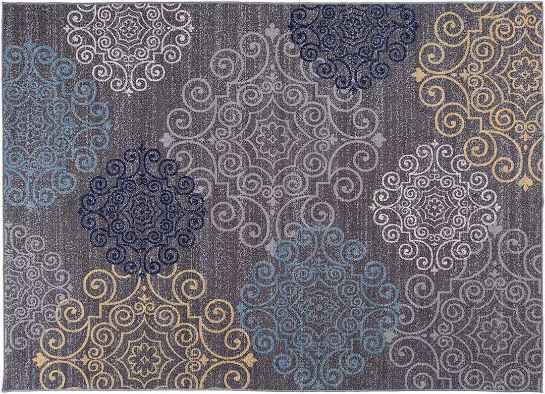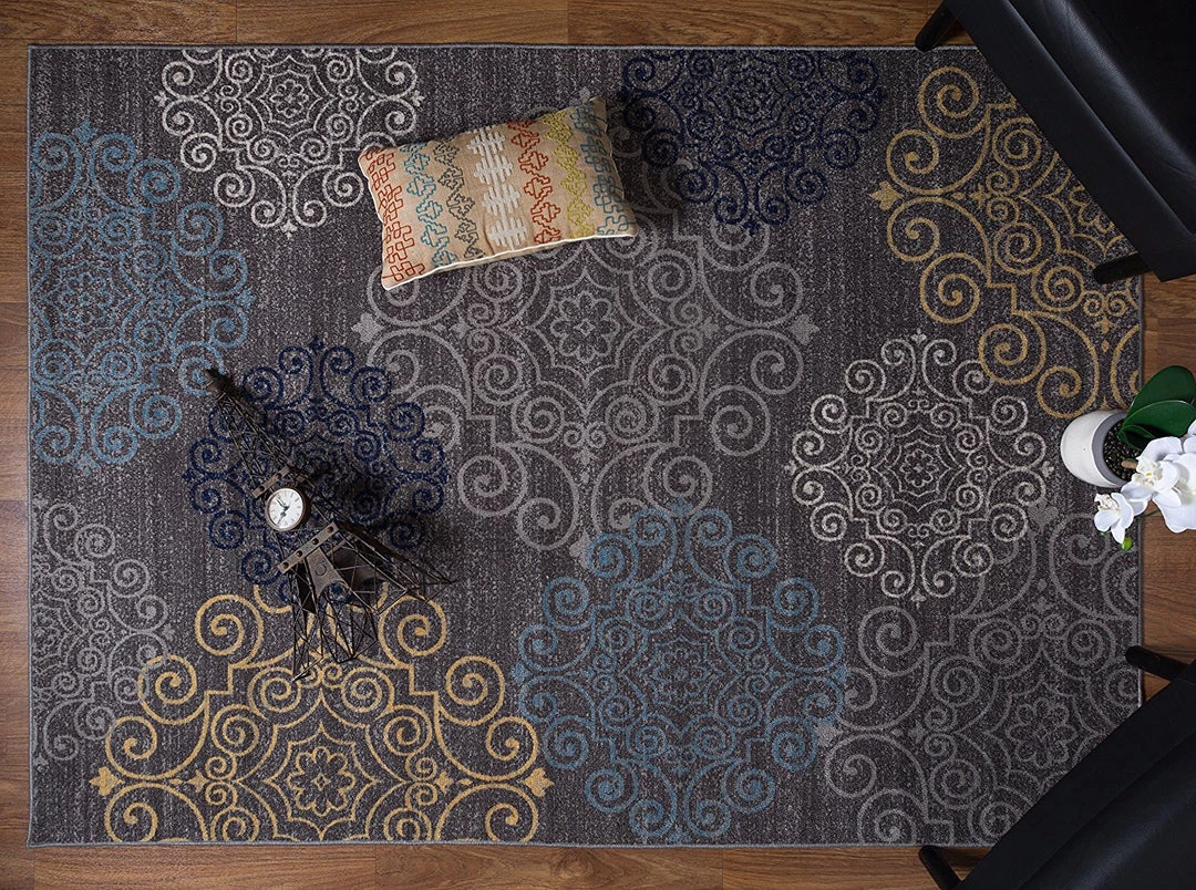 WRG All Area Rugs And Runners Gray Floral Area Rug Non-Slip/ No Skid