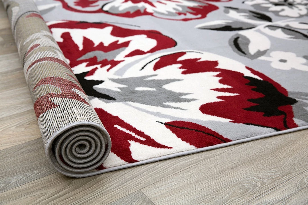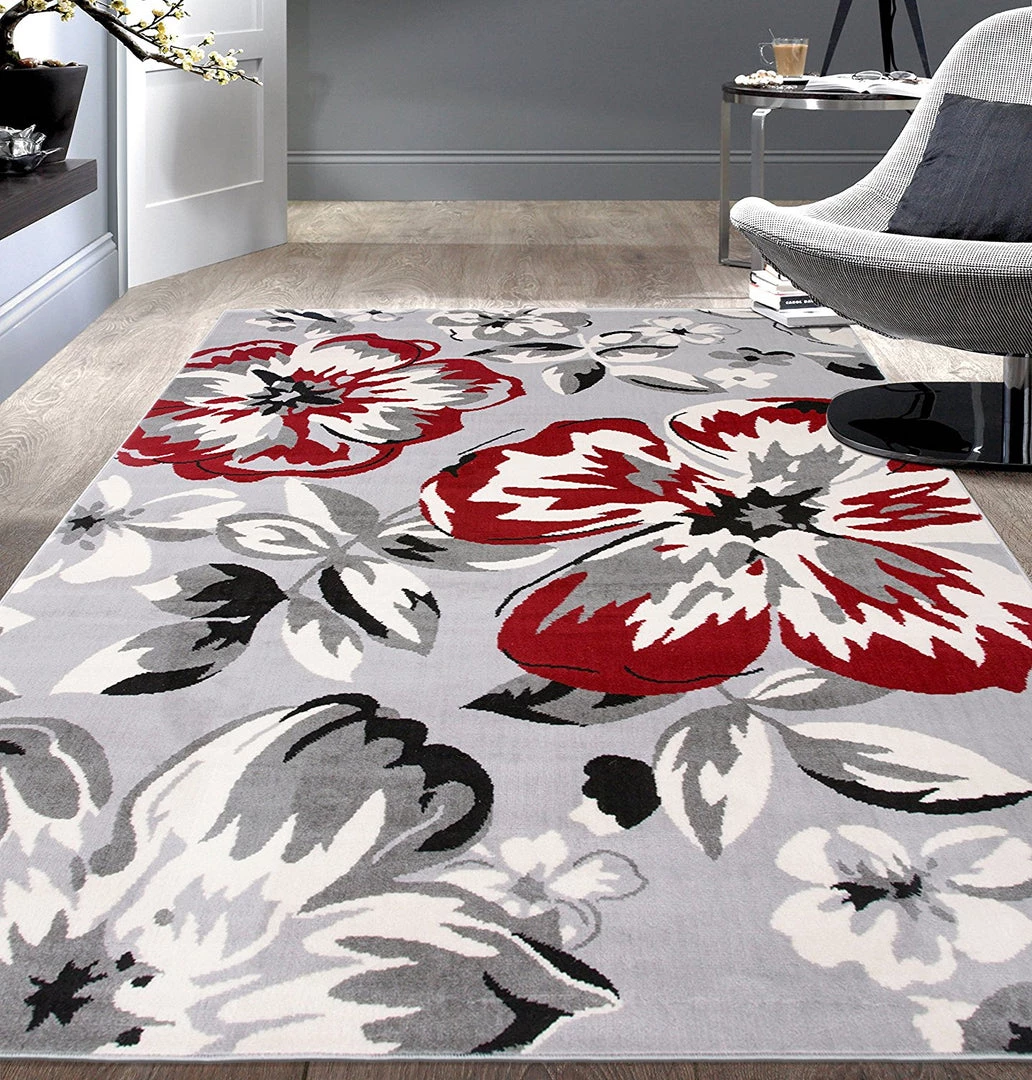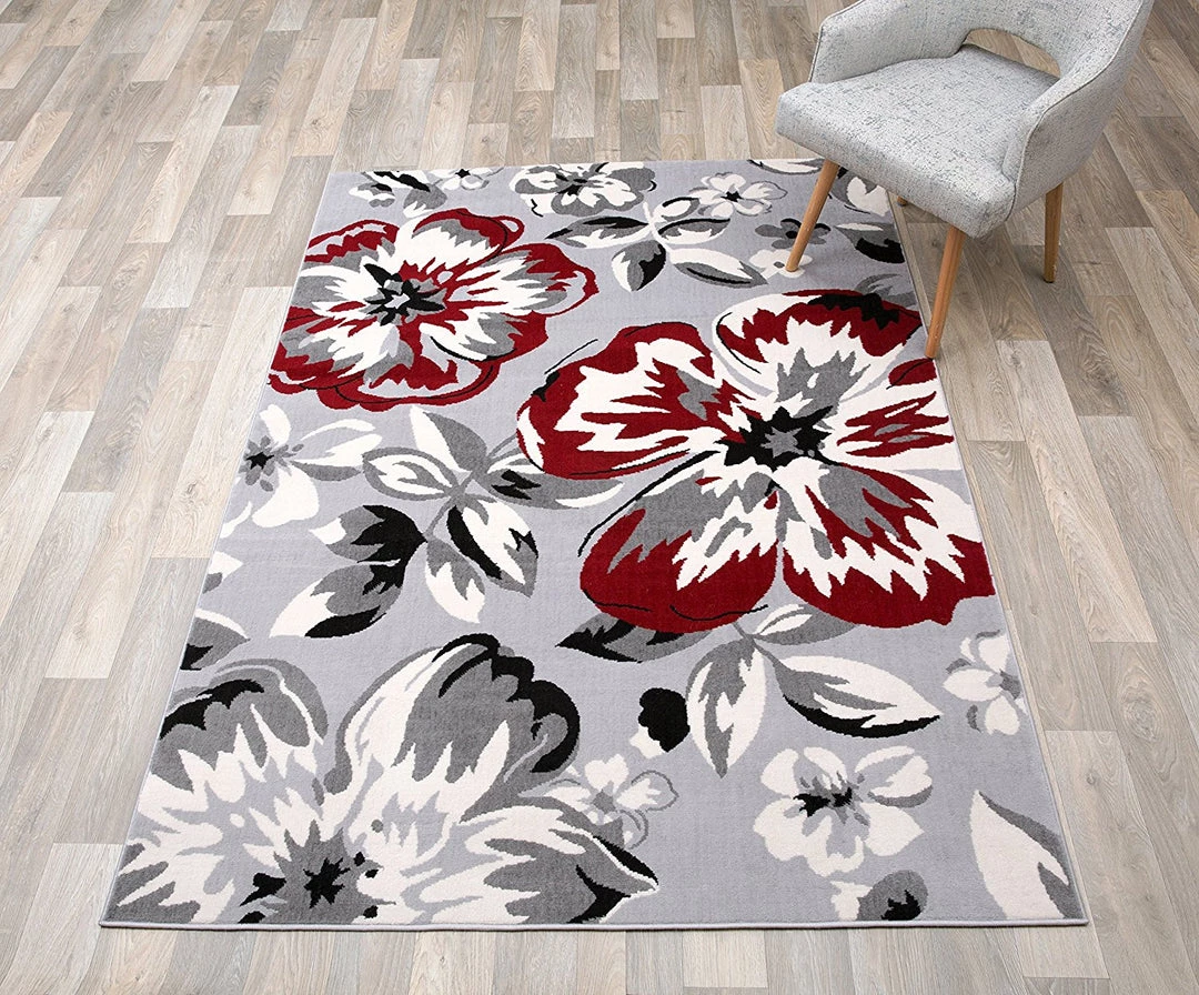WRG All Area Rugs And Runners Gray/Grey Red White Floral Area Rugs