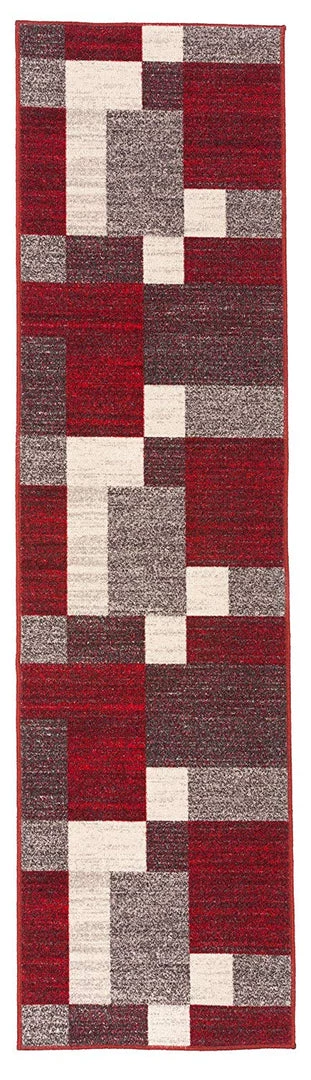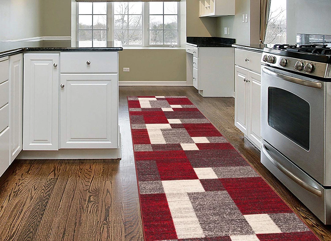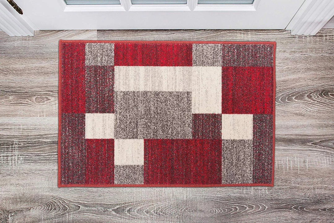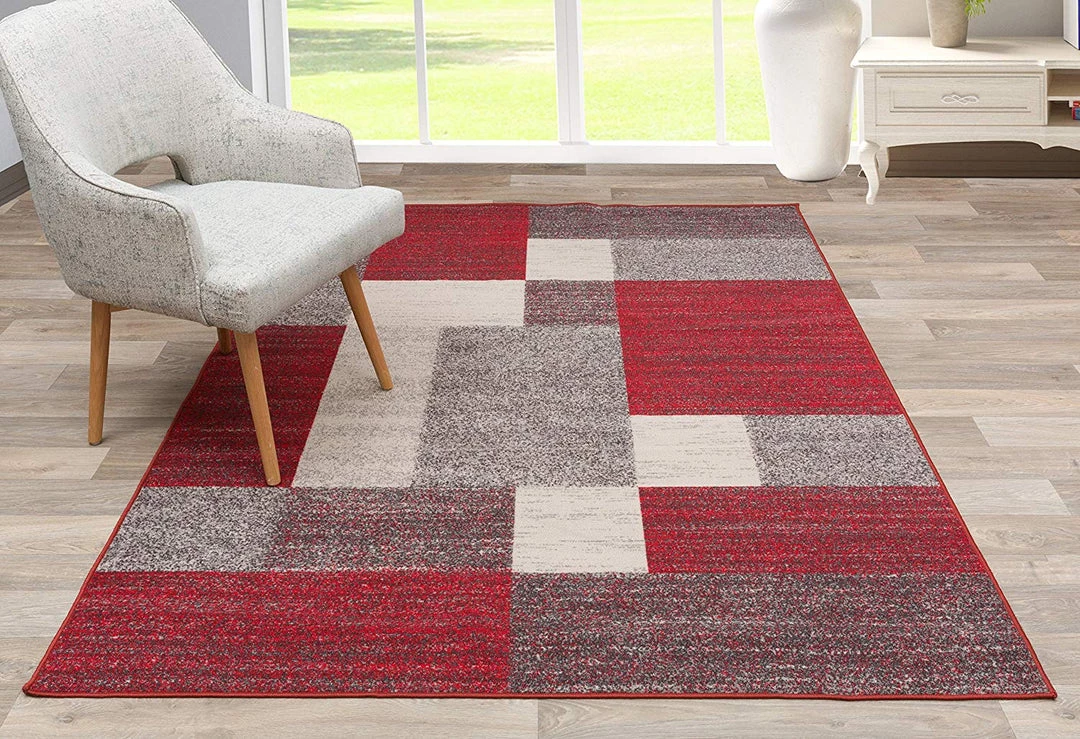 WRG Box Pattern Red Gray Area Rug Non-Slip Non Skid All Area Rugs And Runners