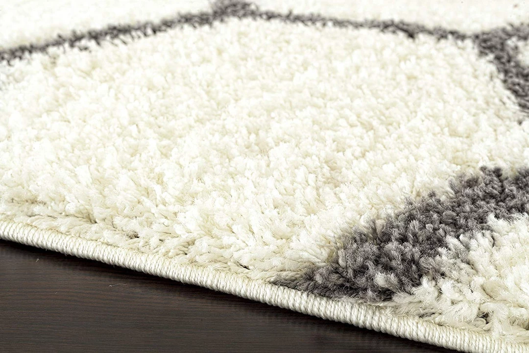 WRG Cozy Geometric Shag Cream Gray Area Rug