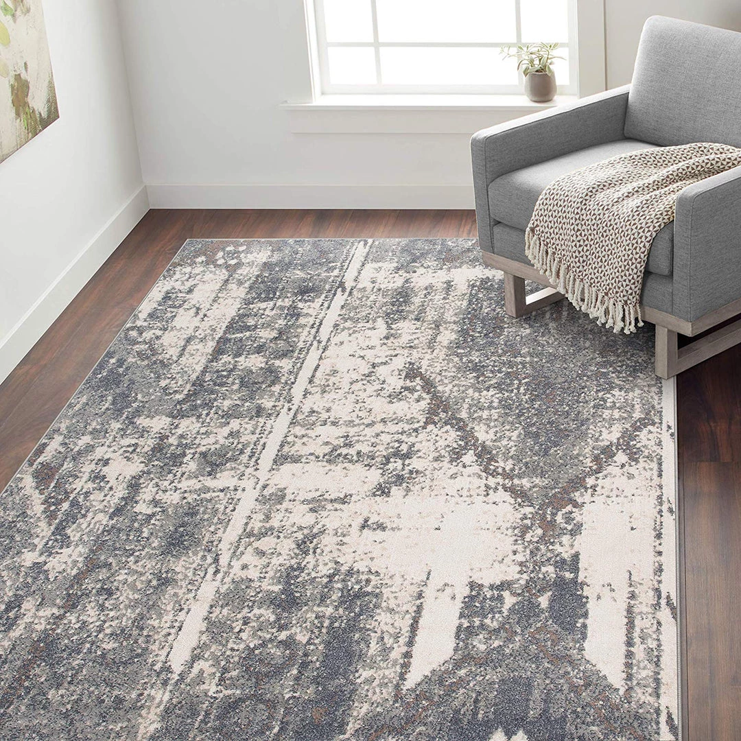 WRG All Area Rugs And Runners Blue Gray Ivory Floral Area Rug Non Slip/ No Skid – Low Pile