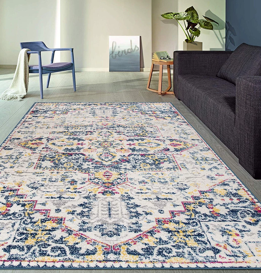 This beautiful rug is unique, stylish and ready TO accent your decor with authentic elegance. This rug features bold colors and distressed bohemian style. This rug provides durable performance and easy care at an amazing value. Please note: due to polypropylene construction, colors can vary depending on the viewing angle of the rug. Tip: We recommend the use of a non-skid pad to keep the rug in place on smooth surfaces. All rug sizes are approximate. Due to the difference of monitor colors, some rug colors may vary slightly. We try to represent all rug colors accurately.