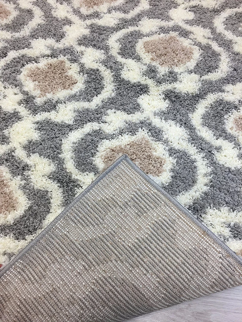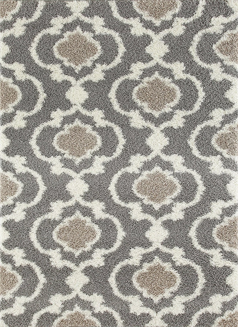 WRG Trellis Gray/Grey Cream Shag Area Rug