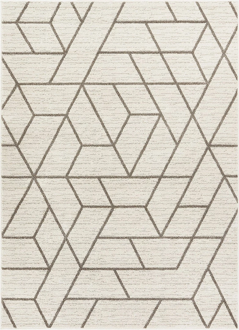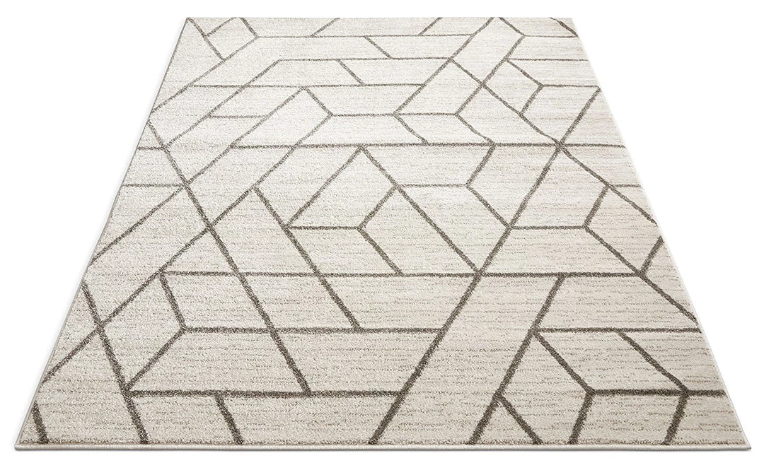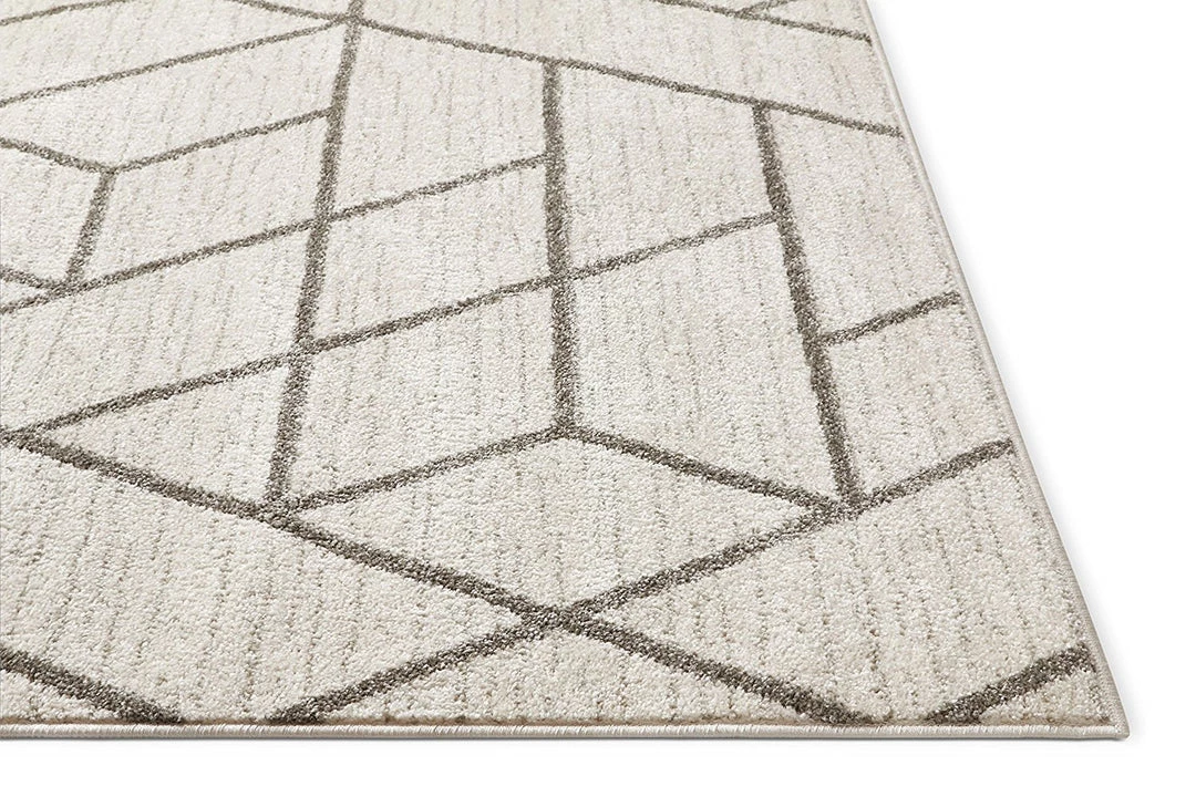 Geometric Grey is a bold, bright pattern of tiled shapes, woven in rich colors of grey and ivory.