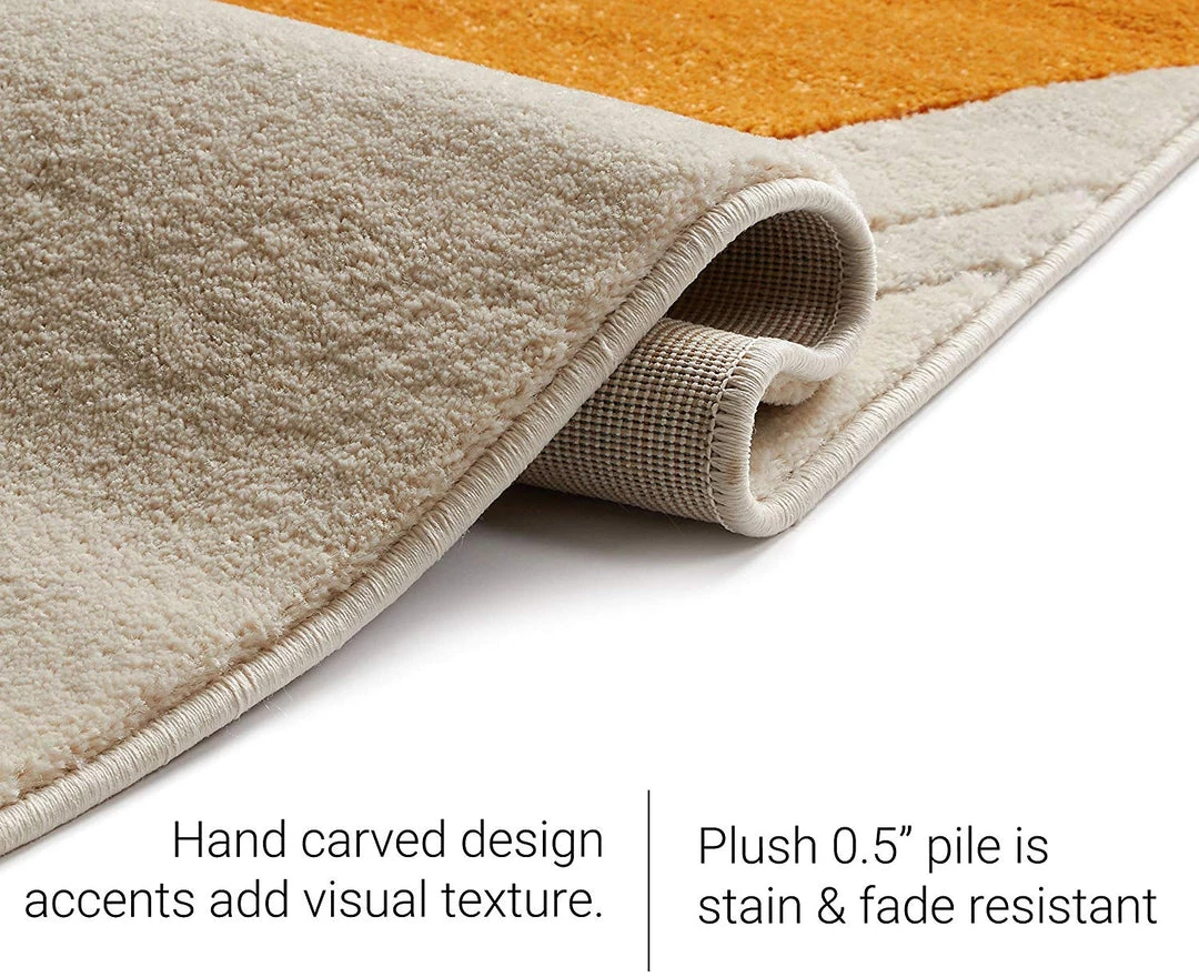 - Thick, plush 0.5″ pile height. Expertly hand carved design accents. 100% air twisted polypropylene power loomed in Turkey lends an exceptional soft feel. Stain resistant and fade resistant. 100% jute backing is safe for wood floors. Extremely durable and very easy to clean. Shed free and made to last for years.