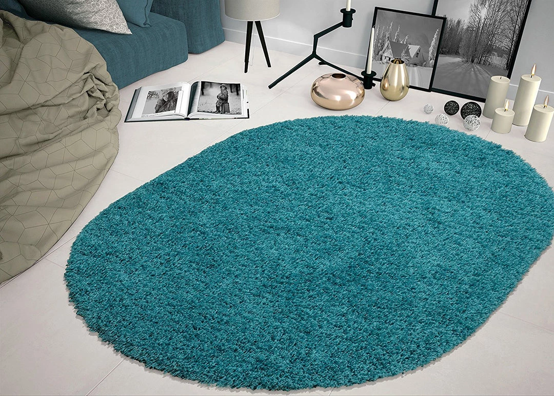 - Embellish your floors with the advantage of this oval shag rug’s solid-design in earth tones that harmoniously blend with most floors and furniture.
