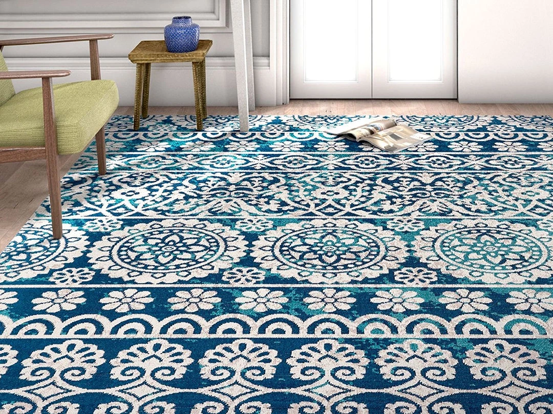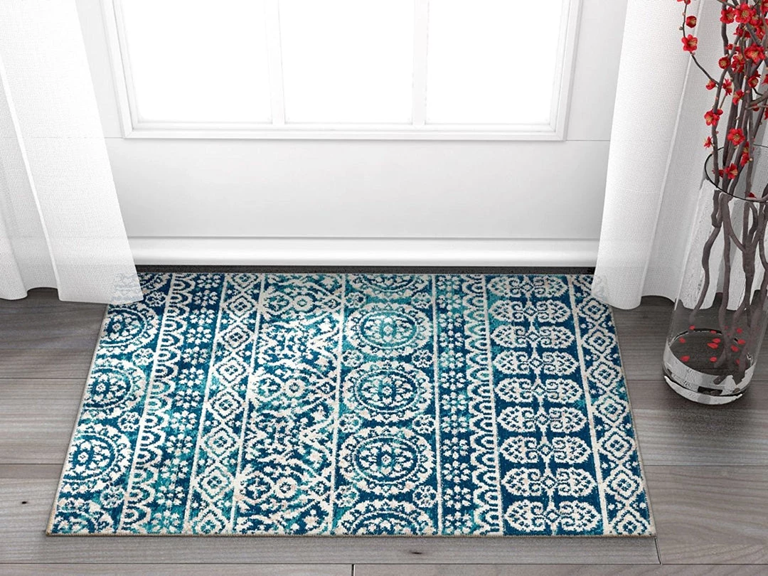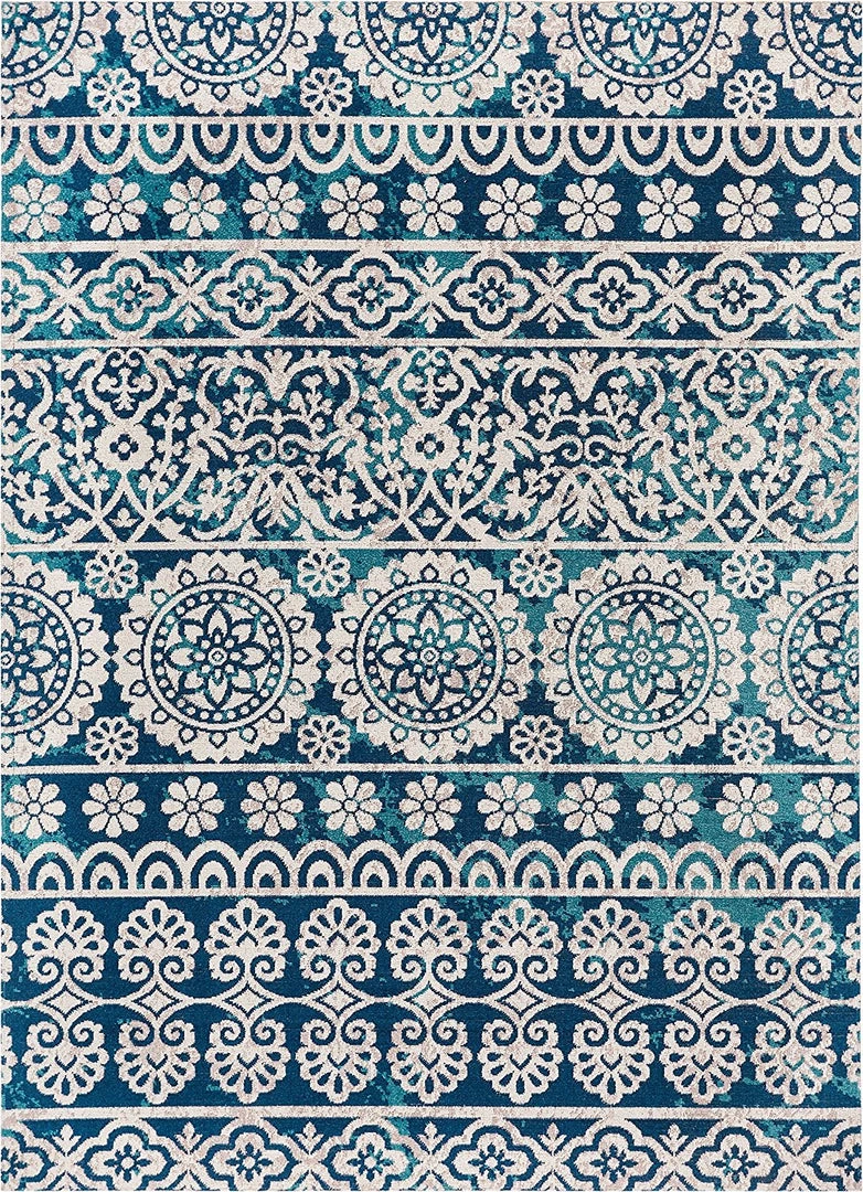 WRG All Area Rugs And Runners Blue Gray Ivory Floral Area Rug Non Slip/ No Skid – Low Pile