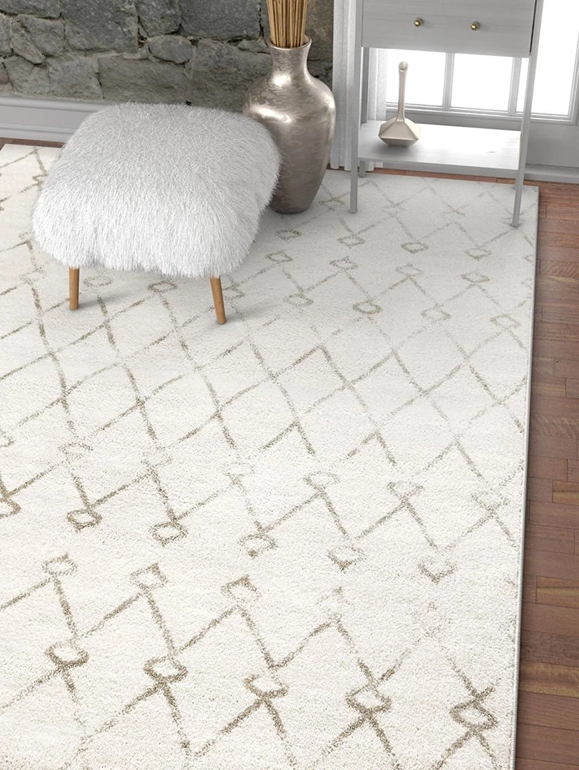 - Modern traditional style, distressed Moroccan tribal trellis pattern.
